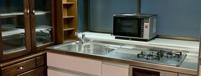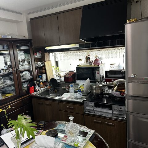 まずは既存キッチンを丁寧に解体。レンジフードやガス機器、吊戸棚を取り外し、配管・電気まわりを確認しました。