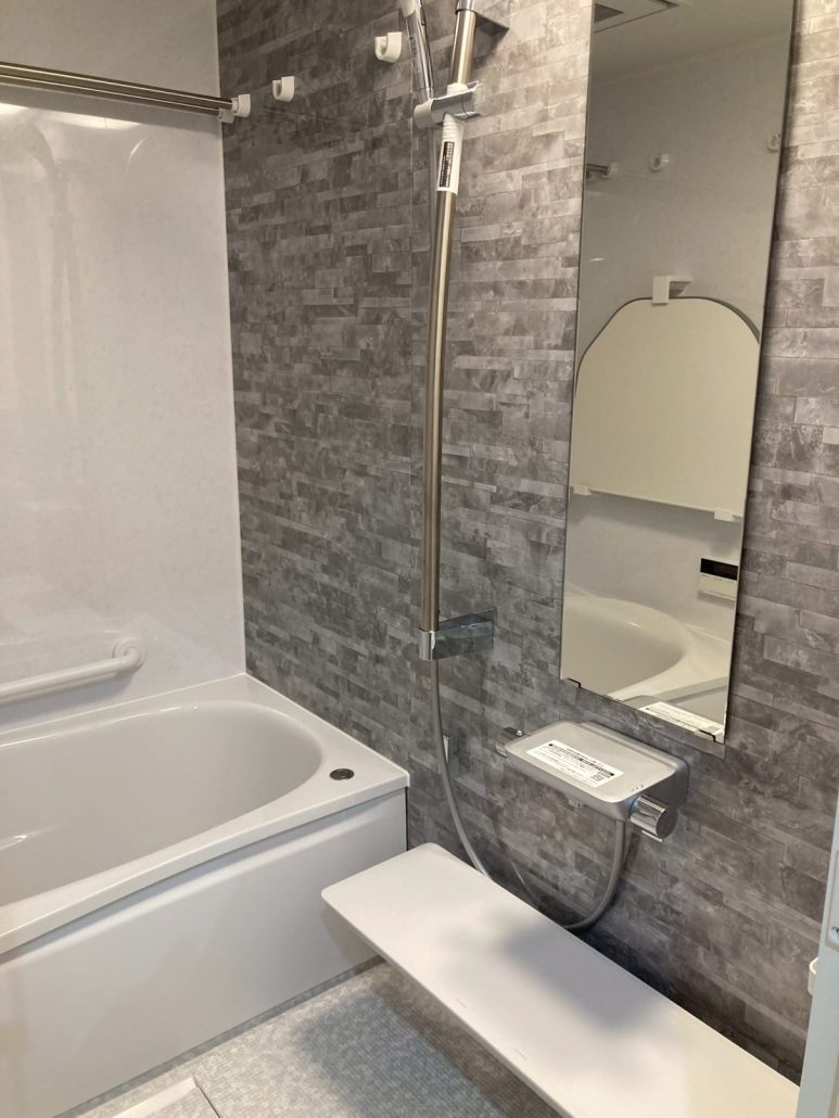 施工後の浴室は、スタイリッシュなグレートーンで統一され、「ホテルのような高級感」×「毎日使いやすい機能性」 を両立した空間へと生まれ変わりました。