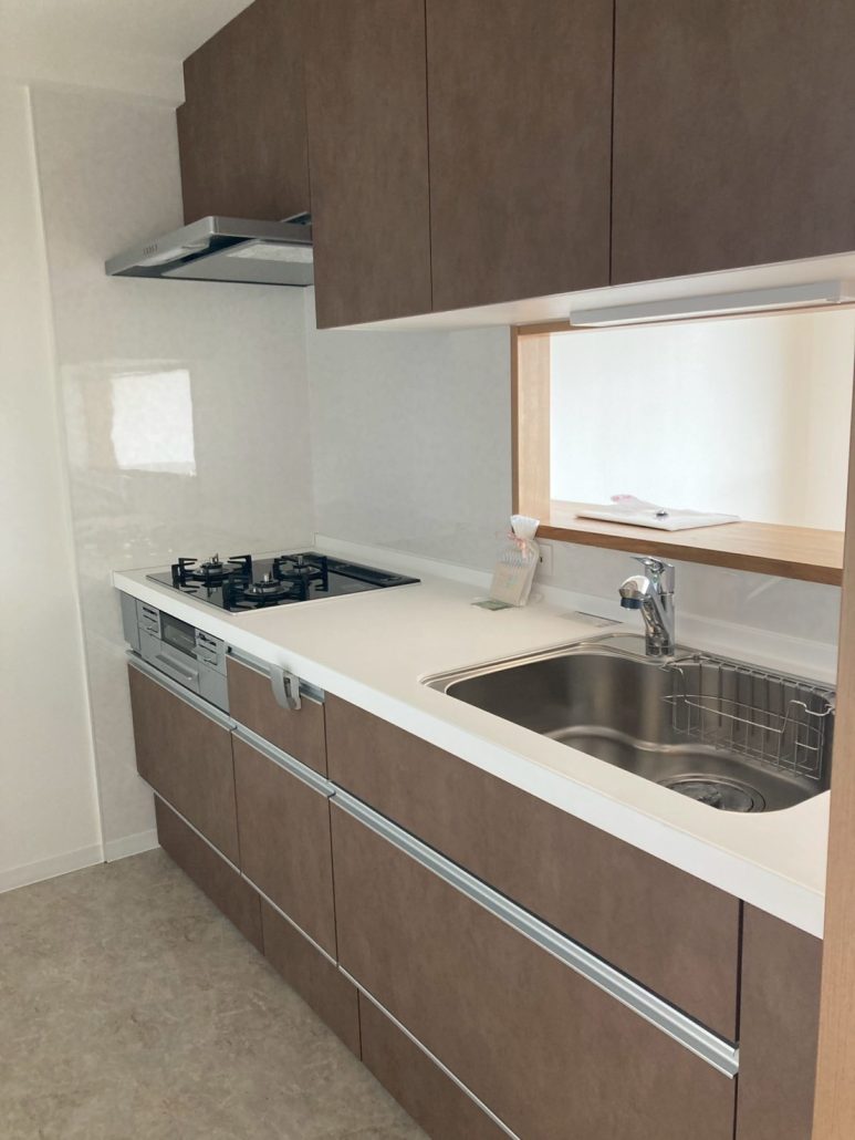 コンロ・水栓・排水・レンジフードの動作チェックを行い、クリーニング後お引き渡し。