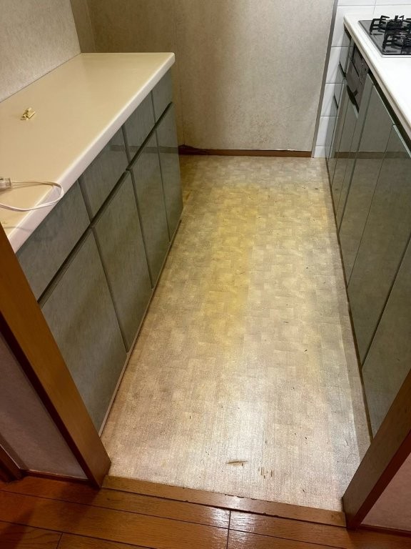 | 施工内容 | 既存床材の状態確認・下地チェック キッチン床フロアタイル張り替え 壁クロス全面張り替え 天井クロス張り替え 見切り・際部分の納まり調整 仕上がり確認・簡易清掃 |
