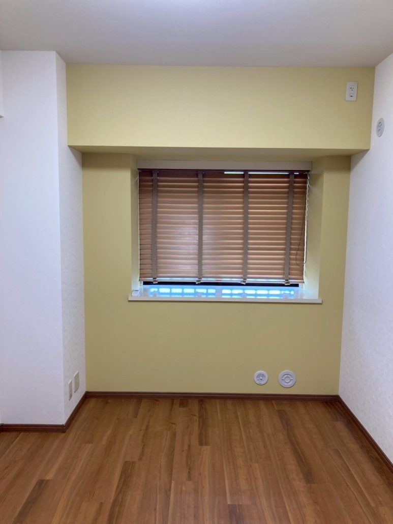 梁下から窓まわりまで同一色でまとめることで、空間全体に一体感が生まれ、洋室の印象を大きく変えるポイントとなりました。