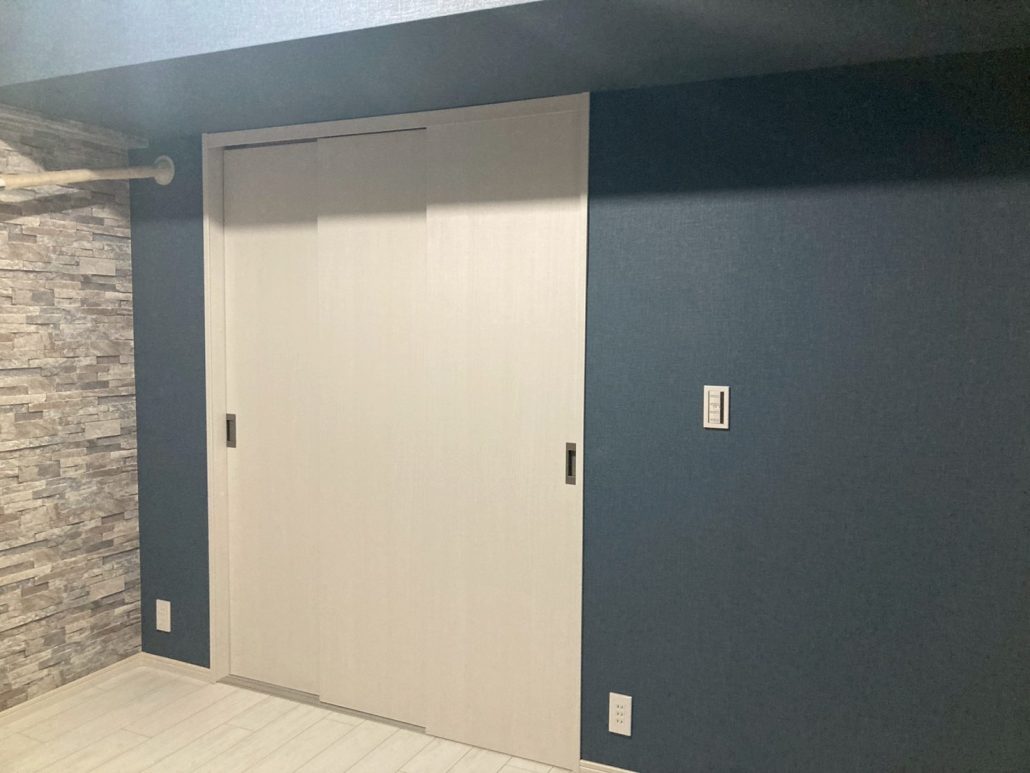 既存の開き戸は、扉を開閉するたびに前面スペースを必要とするため、洋室内の動線や家具配置に影響しやすい構成でした。