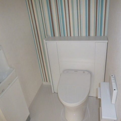 | 担当者からのコメント | 今回は古い和式トイレを解体撤去して、タンクが背面の収納に隠れるタイプの洋式トイレへフルリフォームしました。トイレ室内は白を基調にして、一部をアクセントの壁紙で仕上げることで癒しの空間に様変わり。ご依頼頂いたオーナー様にも大変お喜び頂けました。 |