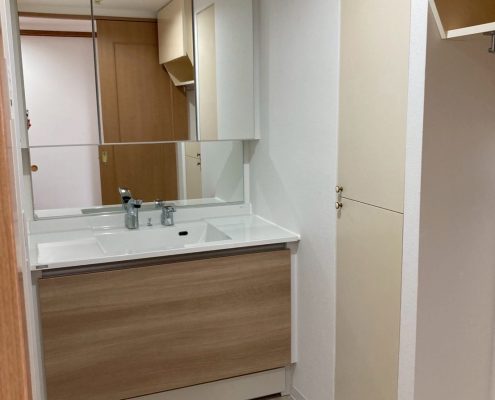 【洗面化粧台入れ替えリフォーム】LIXIL「ルミシス(ボウル一体タイプ)」で上質で温かみのある洗面空間へ|東京都大田区 I様邸(マンション)