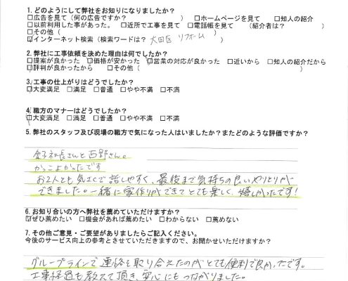東京都大田区|室内改修工事のお客様アンケート|戸建て住宅リフォーム事例