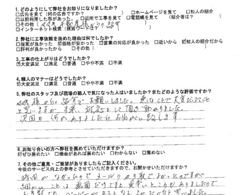 urban-service2022-04-06 09:14:202022-04-06 09:17:46東京都大田区 U様から頂いたアンケート|戸建て住宅内のリフォーム工事